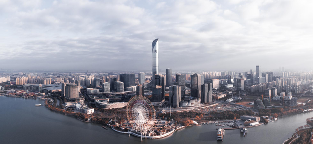 蘇州九龍倉國際金融中心超高層項目位于蘇州工業(yè)園區(qū)湖東CBD商圈核心區(qū)域,西面正對金雞湖,地塊面積為21,280平方米,總建筑面積393,208平方米,項目包含一座92層、高達(dá)450米的江蘇第一高樓,以